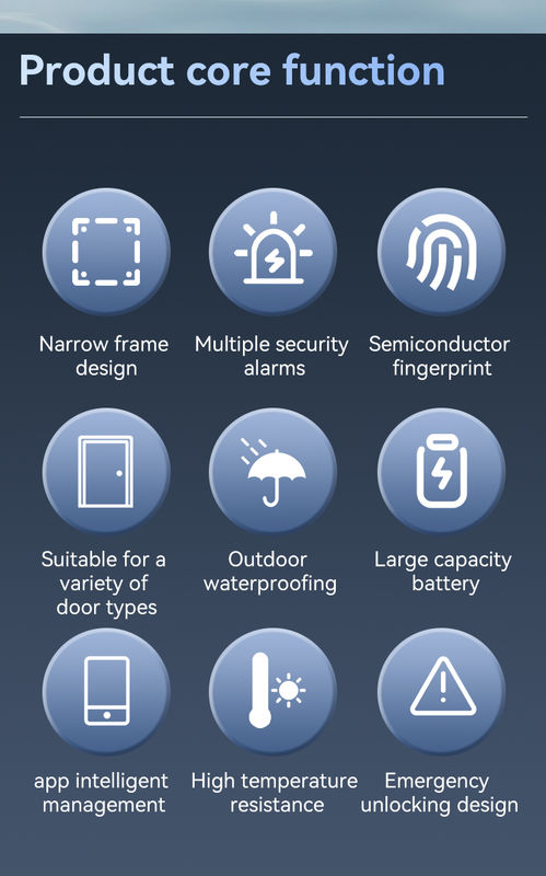 Ø طرق فتح متعددة: مزود بالتعرف على بصمات الأصابع وإدخال كلمة المرور والوصول إلى مفتاح البطاقة والتحكم في تطبيق الهاتف والمفتاح التقليدي للنسخ الاحتياطي.