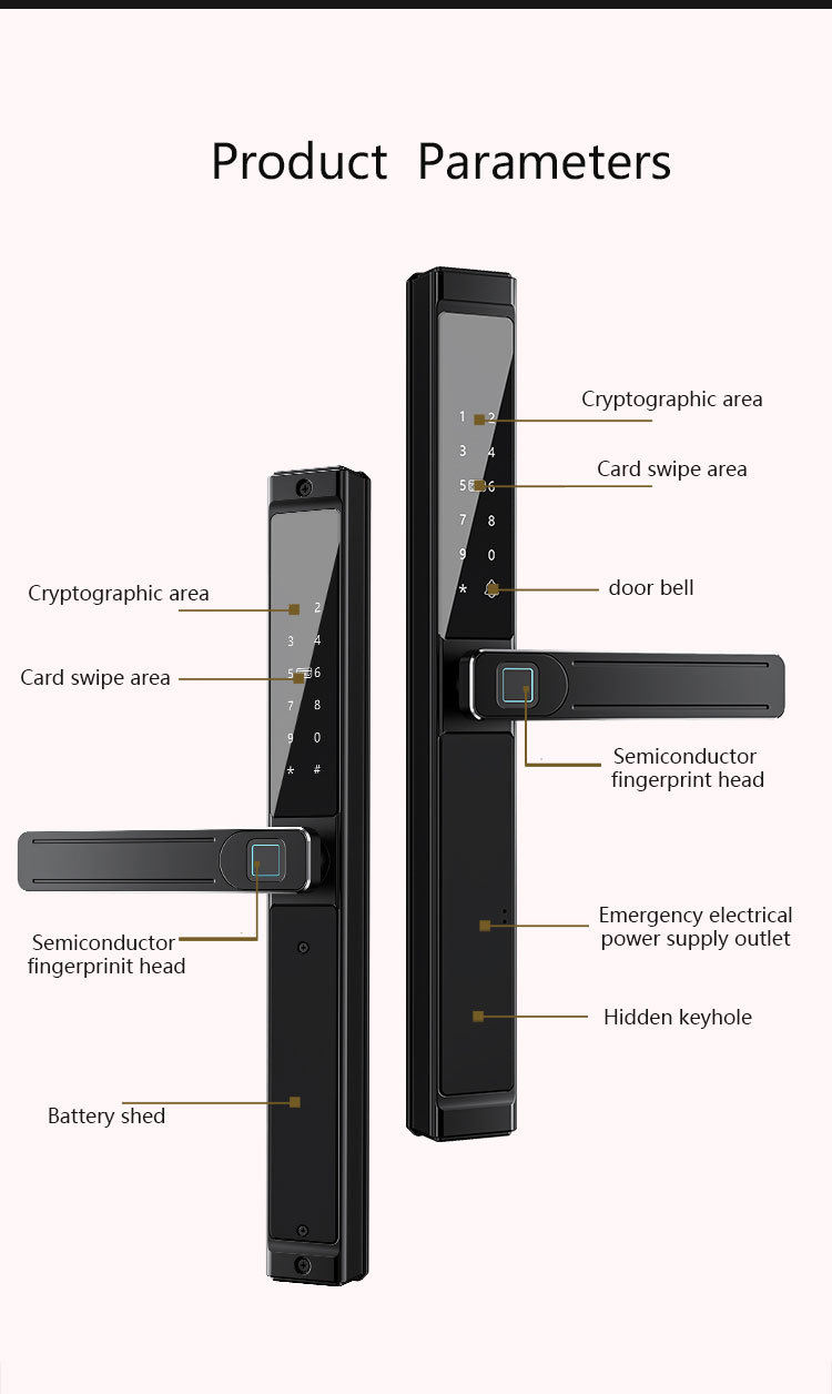 | طرق الفتح | Tuya/TTlock، كلمة المرور، بصمة الإصبع، البطاقة، المفتاح، منفذ USB |