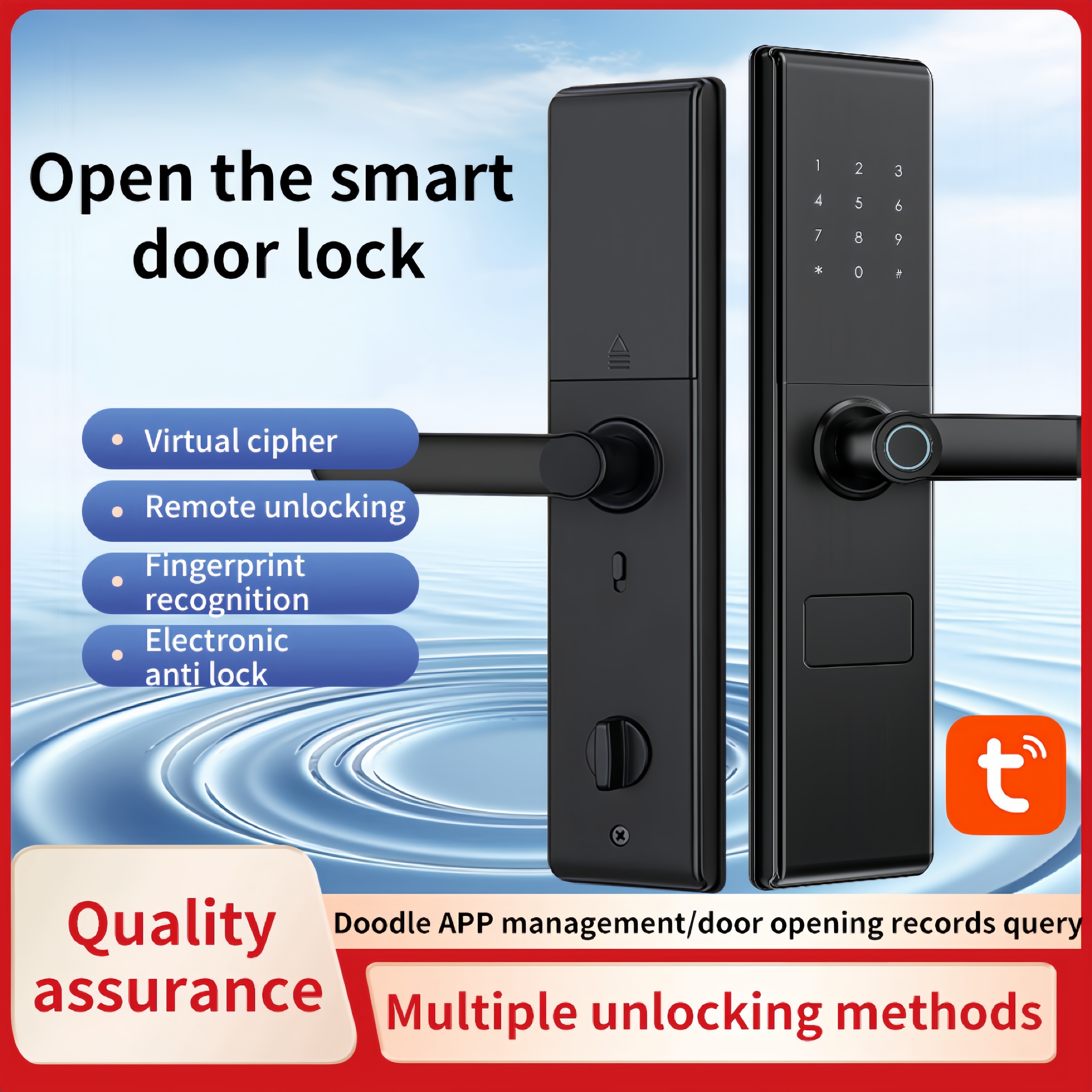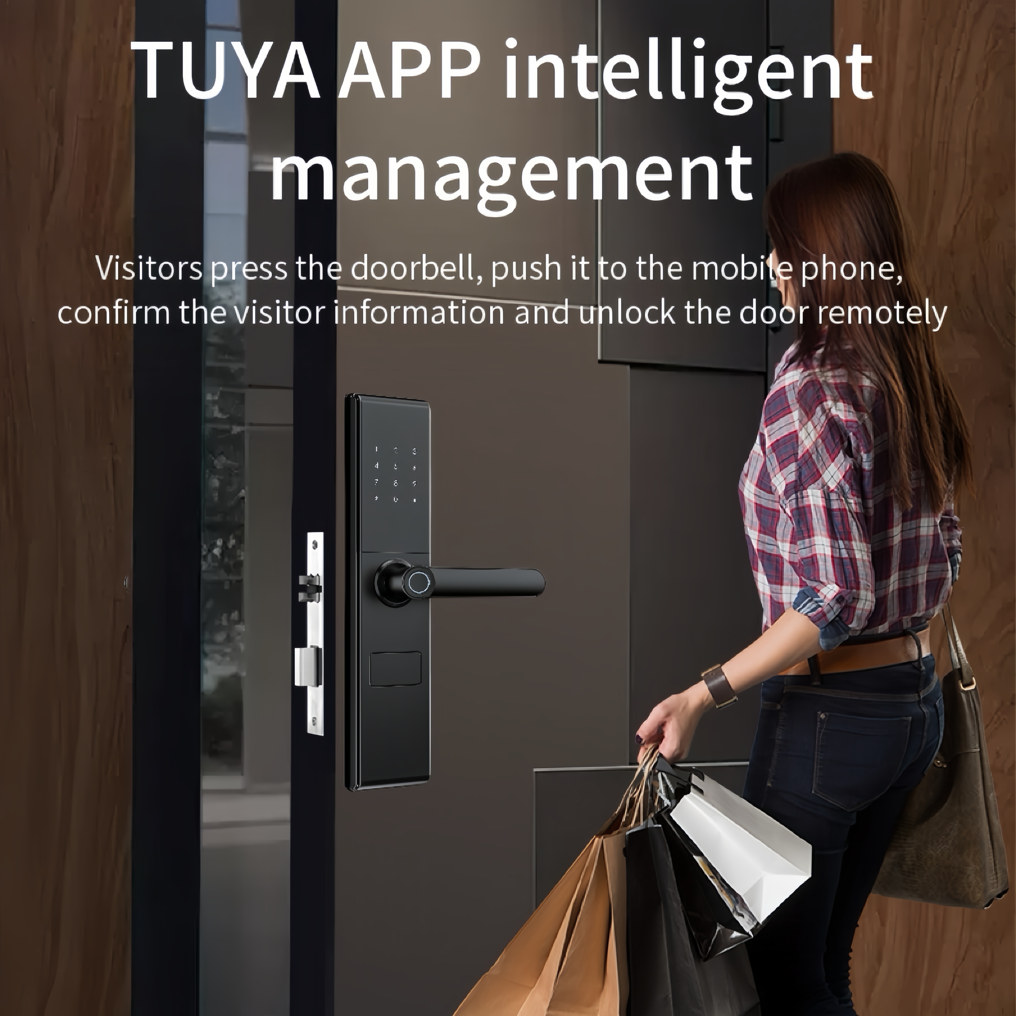 * خيارات إفتتاح متعددة يدعم بصمة الأصابع وكلمة المرور وبطاقة المفتاح والمفتاح الميكانيكي والتحكم عن بعد تطبيق Tuya.